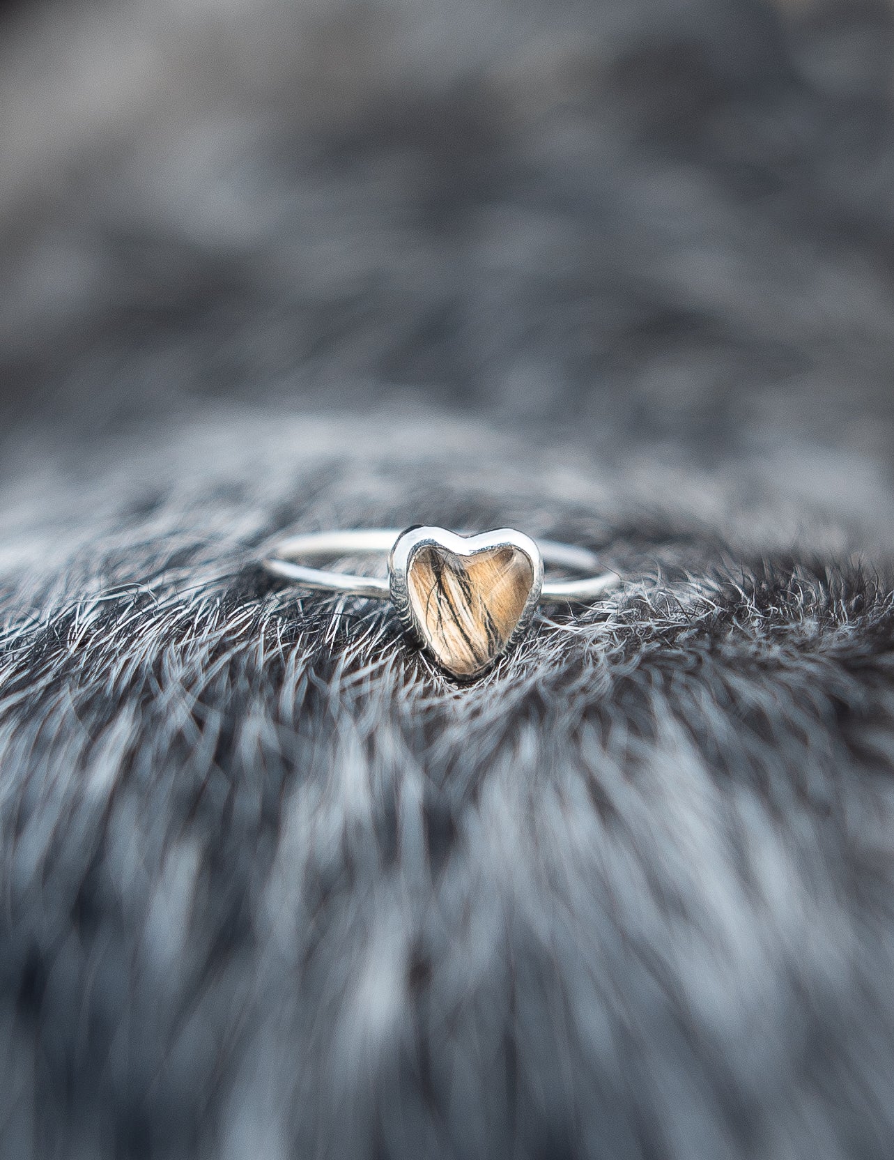Bei kleinen Schmuckstücken (zB die kleinen Ringe) benötigen wir in der Regel nicht mehr als einen kleinen Fingernagel voll Fell. Falls du dir unsicher bist ob das Fell reicht, schreib mir gerne vorher eine Nachricht!