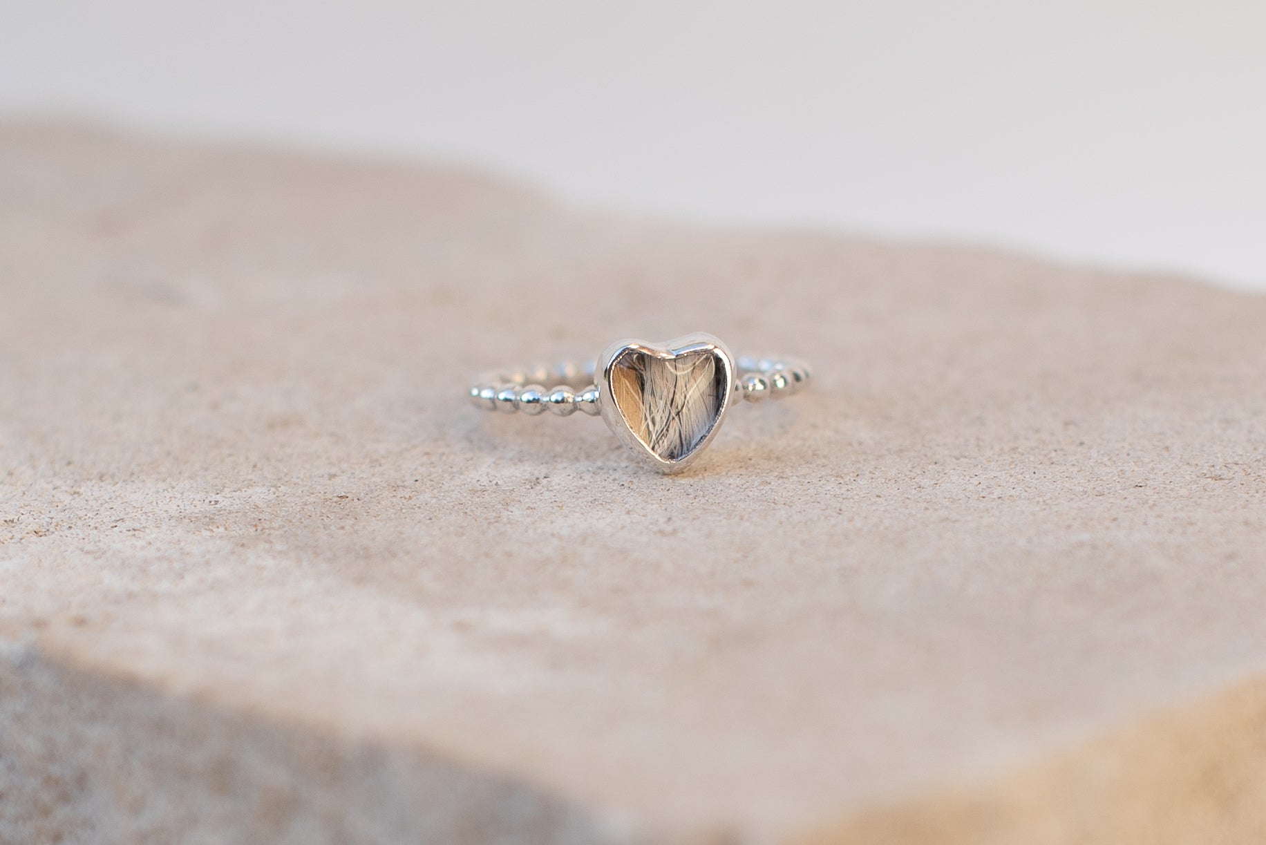 Der Perlring Herzchen ist ein verspielter Ring mit süßem Herzchen, der mit den Haaren deines Tieres eine wunderschöne Erinnerung schafft